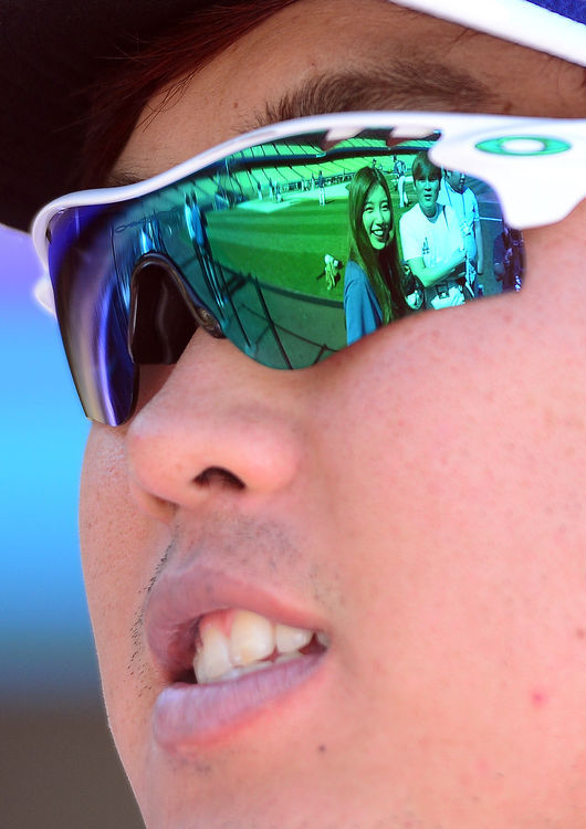 수지,'현진 오빠 나 몰라?' 경기 4시간여 전부터 그라운드에 나와 류현진을 만난 수지.