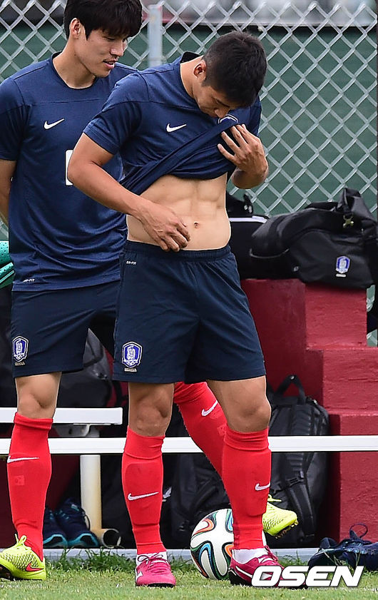 3일(이하 한국시간) 미국 플로리다주 마이애미 세인트 토마스 대학에서 열린 대표팀 전지훈련에서 이근호가 자신의 복근을 바라보고 있다.
