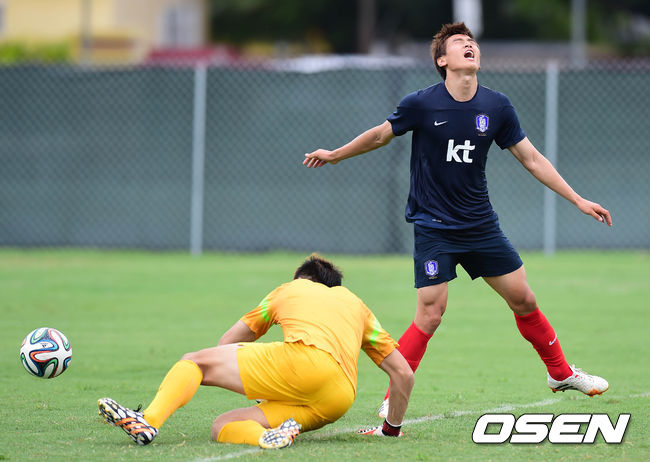 3일(이하 한국시간) 미국 플로리다주 마이애미 세인트 토마스 대학에서 열린 대표팀 전지훈련에서 구자철이 슈팅 기회를 놓치고 아쉬워 하고 있다.