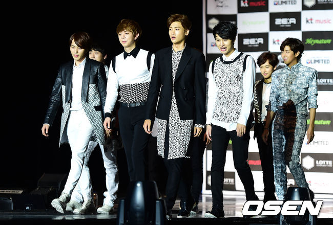 그룹 제국의 아이들이 포토타임을 갖고 있다.
