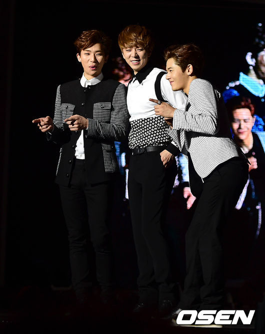 그룹 제국의 아이들 케빈, 문준영, 김동준이 포토타임을 갖고 있다.
