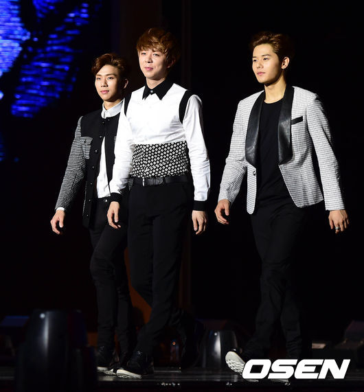 그룹 제국의 아이들 케빈, 문준영, 김동준이 포토타임을 갖고 있다.