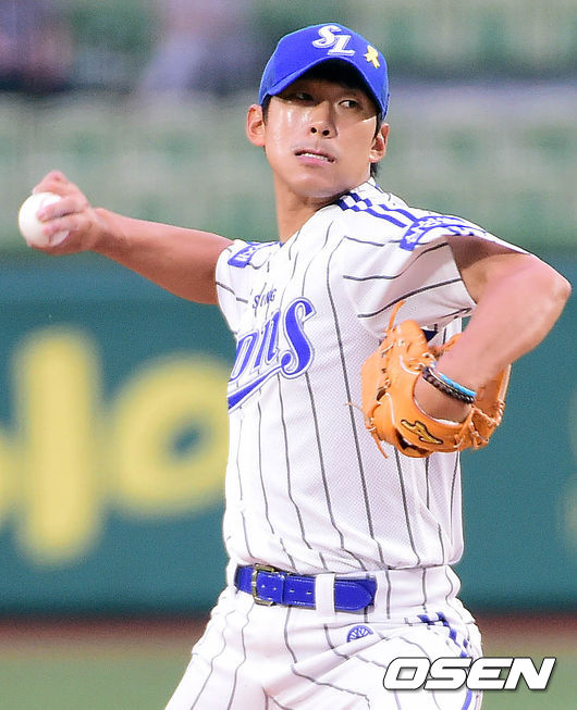 삼성 선발 윤성환이 힘차게 공을 뿌리고 있다.