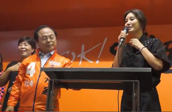 김성령은 지난 2일 부산시 중구 남포동 비프(BiFF)광장에서 진행된 오거돈 후보의 거리유세에 나서 직접 마이크를 잡고 지지를 호소했다.