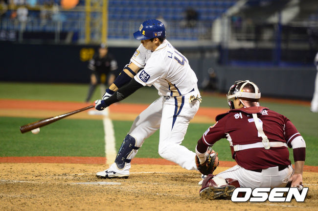 5회말 무사에서 NC 나성범이 2루타를 날리고 있다.