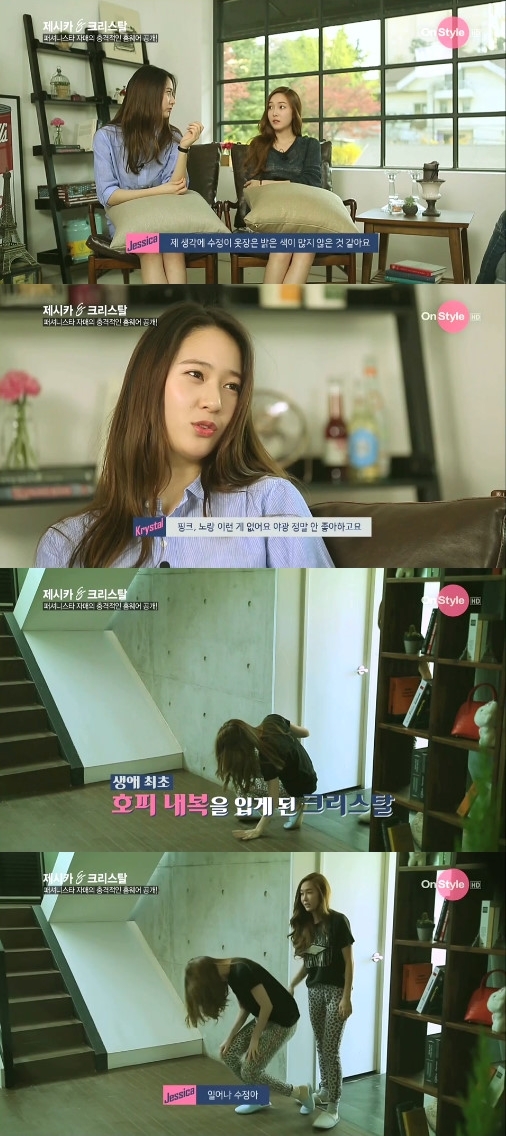 3일 오후 첫 방송된 케이블채널 온스타일 '제시카&크리스탈'에서는 제시카가 동생 크리스탈에게 직접 가져온 호피내복을 권하는 모습이 그려졌다.