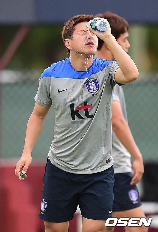 4일 오전(이하 한국시간) 미국 플로리다주 마이애미 세인트 토마스 대학에서 열린 대표팀 전지훈련에서 박주호가 얼굴에 물을 뿌리고 있다.