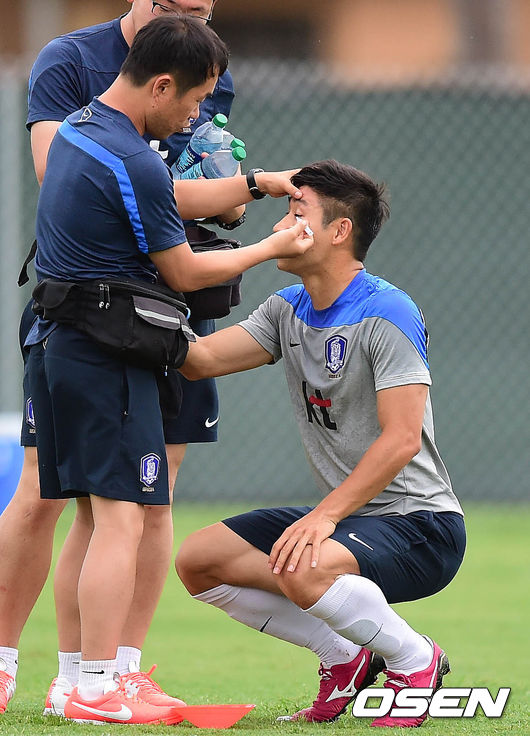 4일 오전(이하 한국시간) 미국 플로리다주 마이애미 세인트 토마스 대학에서 열린 대표팀 전지훈련에서 이근호가 눈쪽에 이물질을 제거하고 있다.