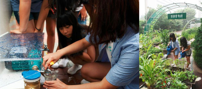 코카-콜라 그린리더 빗물학교는 빗물이용시설이 설치된 학교에서 직접 관리를 하게 될 아이들에게 빗물 이용의 중요성, 수질 측정 등 수자원 교육을 통해 빗물이 소중한 자원임을 알려주는 환경교육도 진행한다.