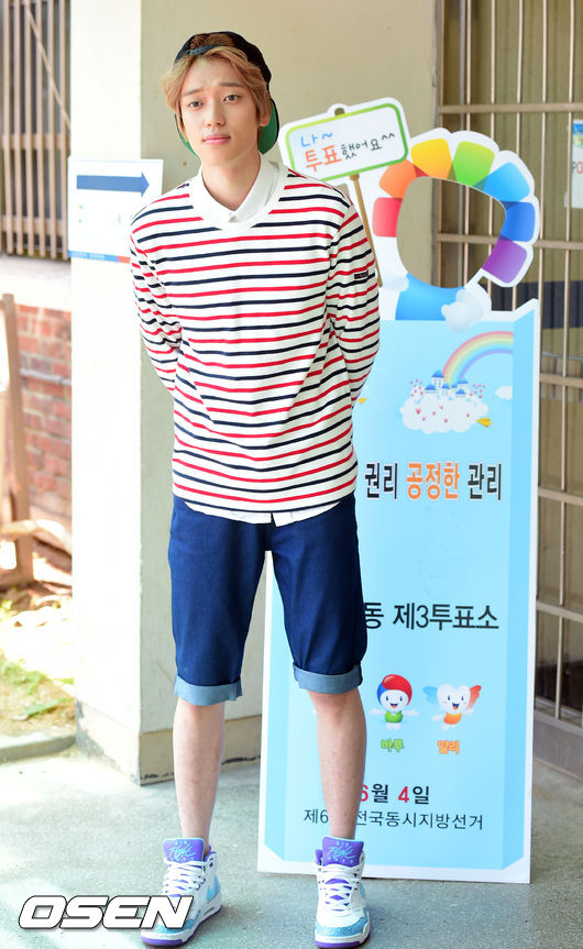 4일 서울 삼성동 언주중학교에 마련된 투표소에 틴탑 니엘이 투표를 위해 나서고 있다.