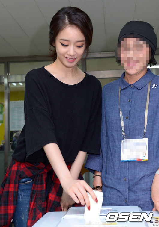 걸그룹 티아라 지연이 4일 오후 서울 논현2동사무소에서 '제6회 전국동시지방선거'에 소중한 한 표를 행사했다.