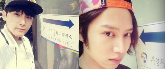 그룹 슈퍼주니어의 김희철과 려욱이 투표 인증샷을 공개했다.