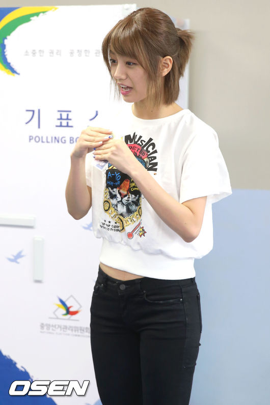 제6회 전국동시지방선거가 열린 4일 오후 서울 송파구 송파2동 주민센터에 마련된 투표소에서 걸스데이 혜리가 투표하고 있다