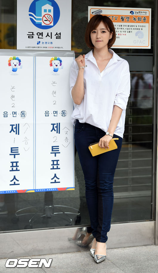 제6회 전국동시지방선거가 열린 4일 오후 서울 강남구 논현2동 주민센터에 마련된 투표소에서 티아라 은정이 투표하고 있다