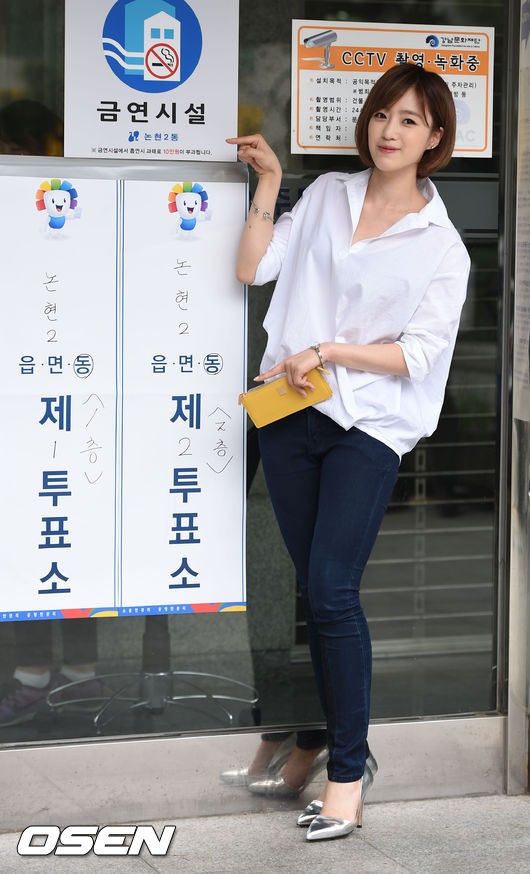 제6회 전국동시지방선거가 열린 4일 오후 서울 강남구 논현2동 주민센터에 마련된 투표소에서 티아라 은정이 투표하고 있다