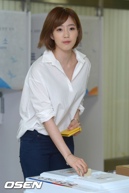 제6회 전국동시지방선거가 열린 4일 오후 서울 강남구 논현2동 주민센터에 마련된 투표소에서 티아라 은정이 투표하고 있다