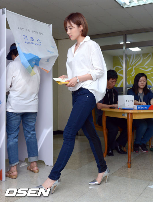 제6회 전국동시지방선거가 열린 4일 오후 서울 강남구 논현2동 주민센터에 마련된 투표소에서 티아라 은정이 투표하고 있다