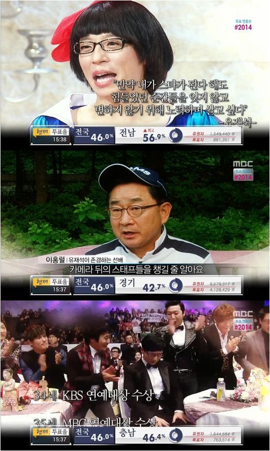 MBC는 4일 오후 ‘무한도전’의 ‘선택 2014’ 특집을 재방송했다. 이 가운데 유재석이 차세대 리더로 선출된 후 그에 대한 다큐멘터리를 내보냈다. 이 영상은 본 방송에서는 방송되지 않았던 부분이다. 다만 지난 달 '무한도전' 공식 트위터를 통해 이 영상이 '재석 용비어천가'라는 이름으로 공개된 바 있다.
