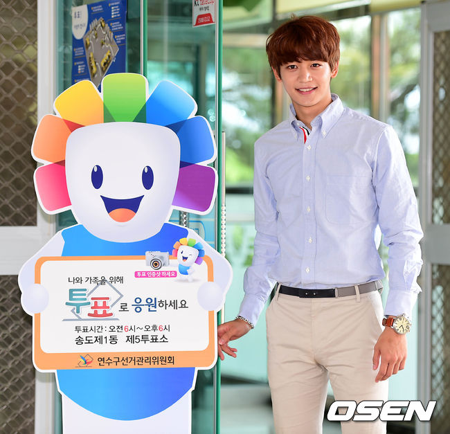 그룹 샤이니 민호가 4일 오후 인천 송도 해송초등학교에서 '제6회 전국동시지방선거'에 소중한 한 표를 행사했다.