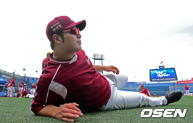 경기에 앞서 넥센 박병호가 몸을 풀고 있다.