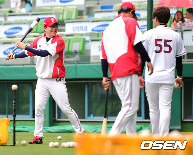 배트 든 양현종,'즐거운 미소~'