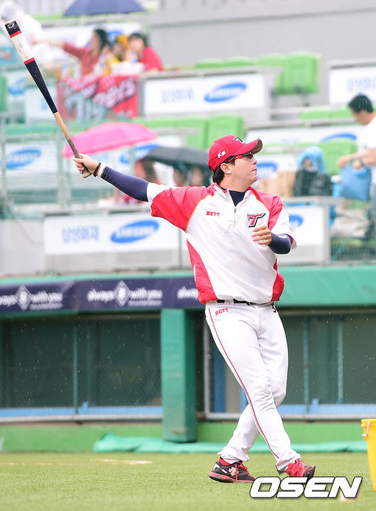 4일 오후 대구구장에서 열리는 '2014 한국야쿠르트 세븐 프로야구' 삼성 라이온즈와 KIA 타이거즈의 경기를 앞두고 KIA 투수 양현종이 방망이를 들고 스윙을 하고 있다.