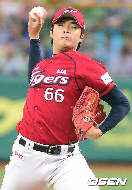 KIA 선발 한승혁이 힘차게 공을 뿌리고 있다.