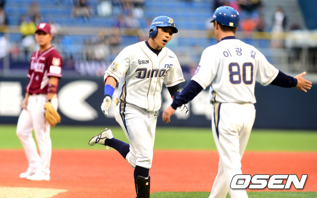 1회말 1사에서 NC 이종욱이 동점 솔로포를 날리고 그라운드를 돌고 있다.