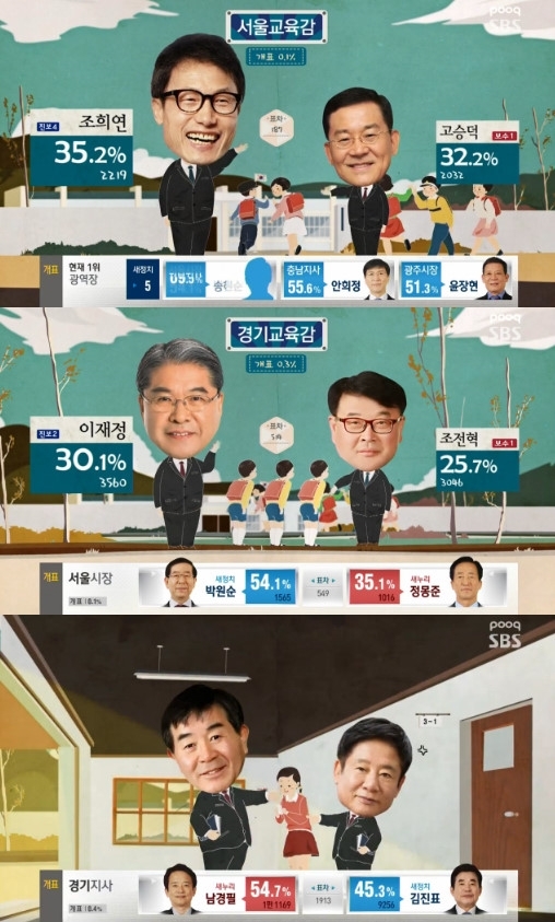 SBS 개표방송 '2014 국민의 선택'이 출마 후보의 정치적 성향을 명시해 시청자들의 이해를 도왔다.