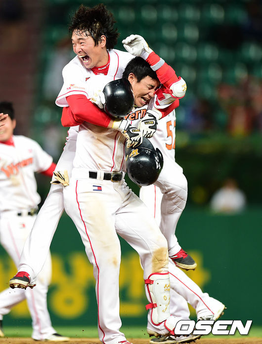 끝내기 안타 김강민,'그렇게 좋아?'
