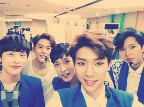 그룹 제국의아이들이 첫 방송 무대를 앞두고 인증 사진을 찍었다.