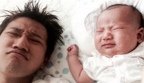 김영우는 5일 오후 자신의 트위터를 통해 “아빠 가지마! 미안하다 아들아..앨범이 나와서..48days 5.2kg”라는 글과 함께 한 장의 사진을 게재했다.