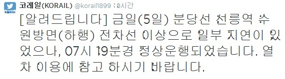 현재 코레일은 구체적인 사고 원인을 조사 중이다.