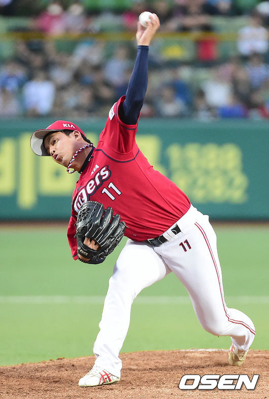 KIA 선발 임준섭이 힘차게 공을 뿌리고 있다.