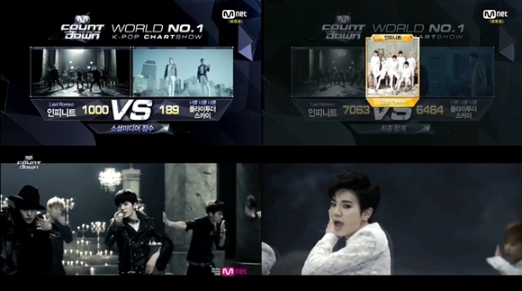 그룹 인피니트가 '엠카운트다운'에서 2주 연속 1위에 올랐다.