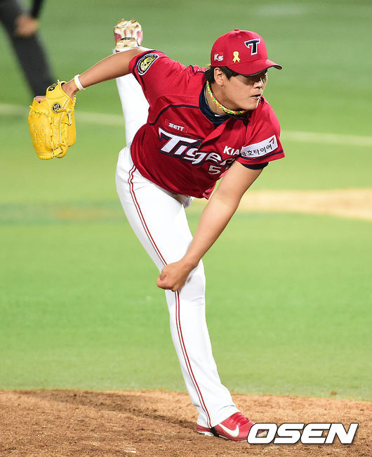 6회말 삼성 공격 때 KIA 투수 심동섭이 힘차게 공을 뿌리고 있다.