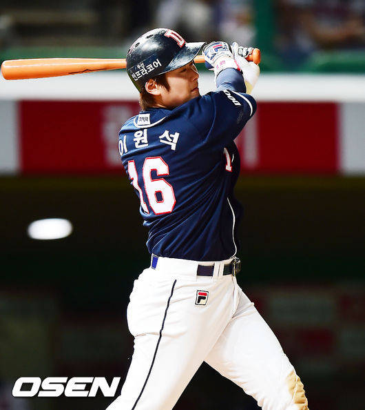 5일 오후 인천 문학야구장에서 열린 2014 한국야쿠르트 세븐 프로야구 SK 와이번스와 두산베어스의 경기, 7회초 무사 주자 1,3루 두산 이원석이 유격수 앞 병살타로 1타점을 올리고 있다.