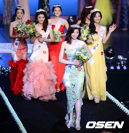 2014 미스 서울 진-선-미로 선정된 참가자들이 무대를 걷고 있다.