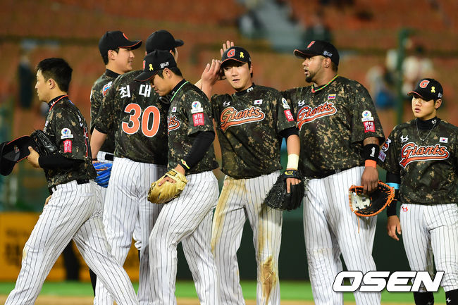 경기후 롯데 선수들이 승리 하이파이브를 하고 있다./jpnews@osen.co.kr