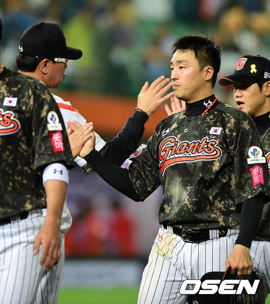 경기후 롯데 손아섭이 김시진 감독과 승리 하이파이브를 하고 있다./jpnews@osen.co.kr