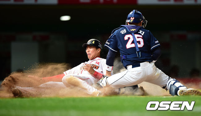 한동민,'모래폭풍을 일으키며 홈 세이프!'