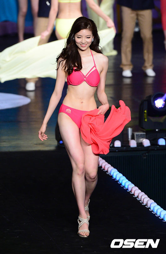 2014 미스 서울 진을 차지한 김서연이 수영복 퍼레이드를 펼치고 있다.