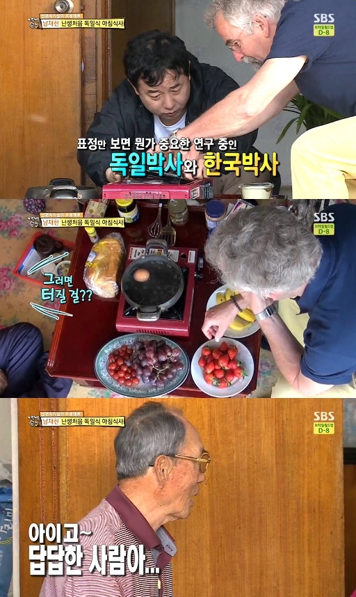 남재현은 독일에서 온 스티글러 박사와 함께 5일 오후 방송된 SBS 예능프로그램 '자기야-백년손님'(이하 '자기야')에서 장인, 장모를 위해 아침을 직접 준비하겠다고 나섰다.