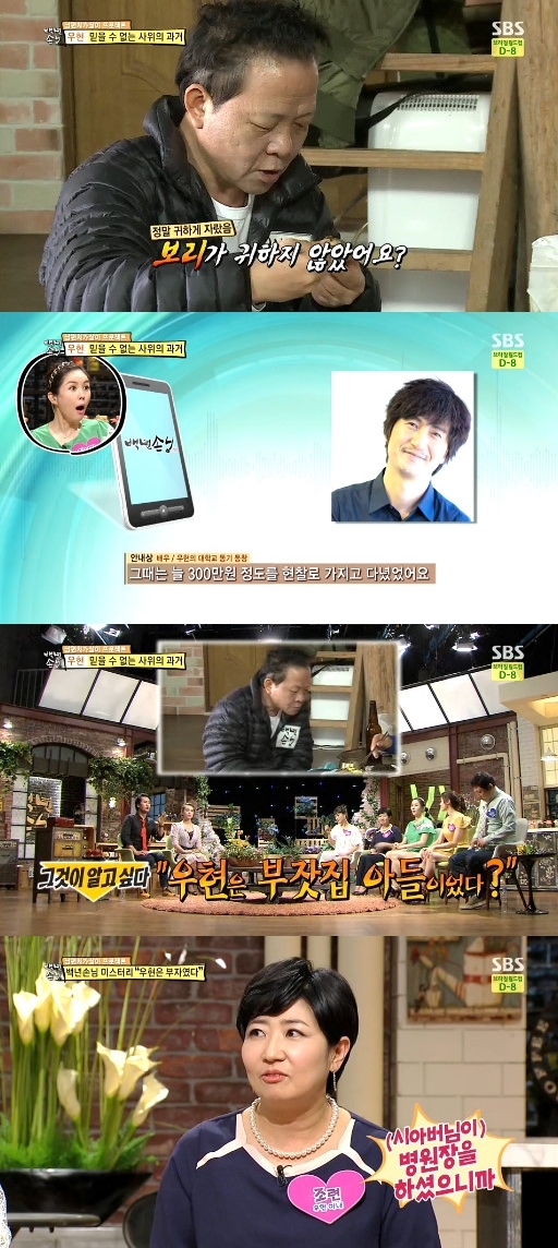 안내상은 “우현이 잘살았다. 현이는 그때는 늘 300만원 정도를 현찰로 가지고 다녔다. 써도 써도 그 돈을 다 못썼다”고 설명했다. 또 우현의 아내 조련은 “시아버지가 병원장 출신이었다”며 부잣집 아들이었다고 말했다.