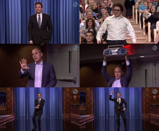 매트 라우어의 재촉에 곤란해 하던 지미 펄론은 곧 말춤을 추기 시작했고, 관객은 환호했다.
