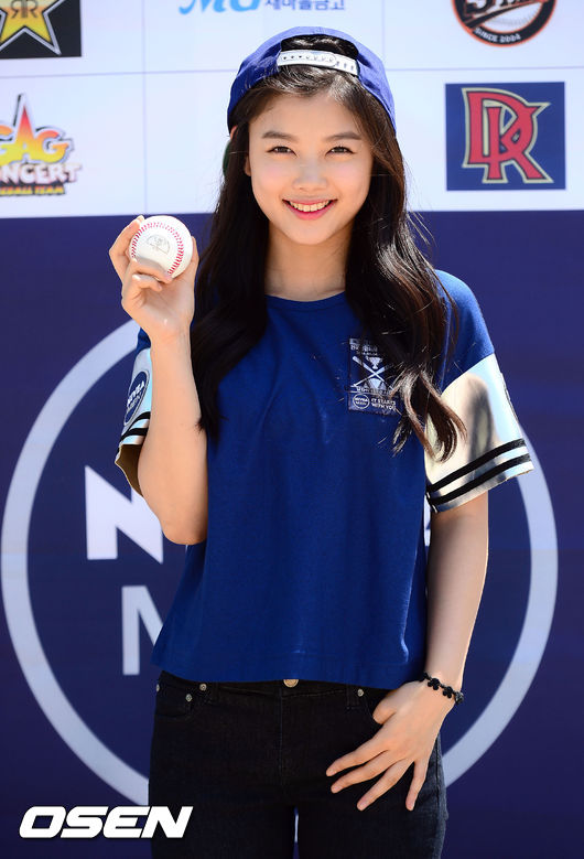 6일 오전 경기도 연천 베이스볼파크에서 진행된 '제5회 니베아맨 컵 전국 생활체육인 야구대회' 개막식에 참석한 김유정이 포토타임을 갖고 있다.