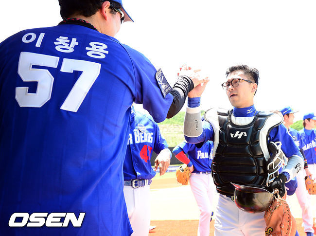6일 오전 경기도 연천 베이스볼파크에서 진행된 '제5회 니베아맨 컵 전국 생활체육인 야구대회' 폴라베어스와 니베아맨의 경기종료 후, 승리한 폴라베어스 이창용과 조설규가 기쁨의 하이파이브를 나누고 있다.