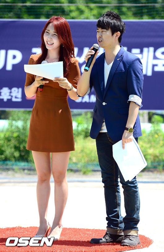 6일 오전 경기도 연천 베이스볼파크에서 진행된 '제5회 니베아맨 컵 전국 생활체육인 야구대회' 개막식에서 뮤지컬 배우 최예윤과 최근 개봉한 영화 '타인의 멜로디'에서 주연을 맡은 편보승이 진행을 하고 있다.
