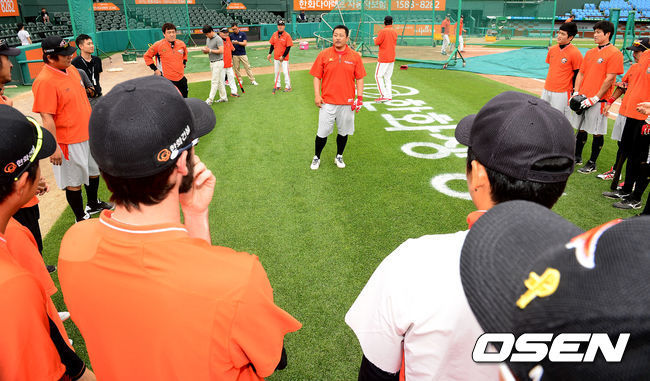 조인성은 이날 경기전 훈련을 앞두고 한화 선수단과 공식적으로 마주했다. 김남규 매니저가 "한 식구가 됐는데 나이가 제일 많다"고 소개하자 선수단은 박수로 그를 맞이했다. 조인성도 "어제 잠을 설쳤다. 팀이 어려운 상황인데 여러분과 함께 한다면 잘 할 수 있을 것 같다. 앞으로 많이 도와달라"고 첫 인사를 건넸다.