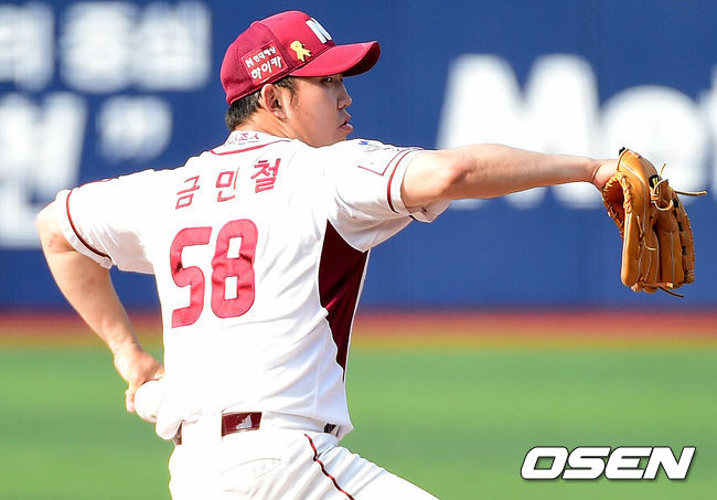 넥센 선발 금민철이 힘차게 공을 뿌리고 있다.